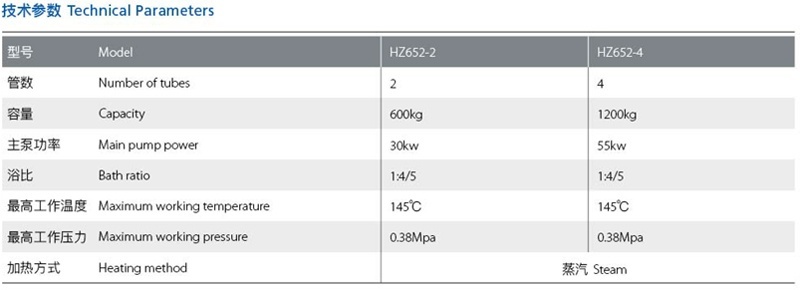 HZ-652系列高温高压低浴比喷射染色机避免了O型染缸是适用范围少,L型染缸耗水多的问题,将二者的优点(低浴比、适染布种范围广)相结合,对印染企业的绿色可持续发展起到助推作用。