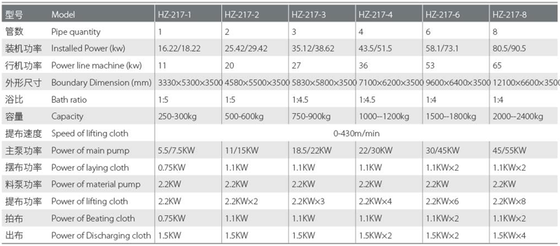 HZ-217系列高温高压小浴比溢流染色机通过对喷嘴和缸身结构的改良,使其对各类布种的适应性更广,配合适合的染色工艺,以最低的染色成本来解决易生折痕及敏感色等织物的染色问题。